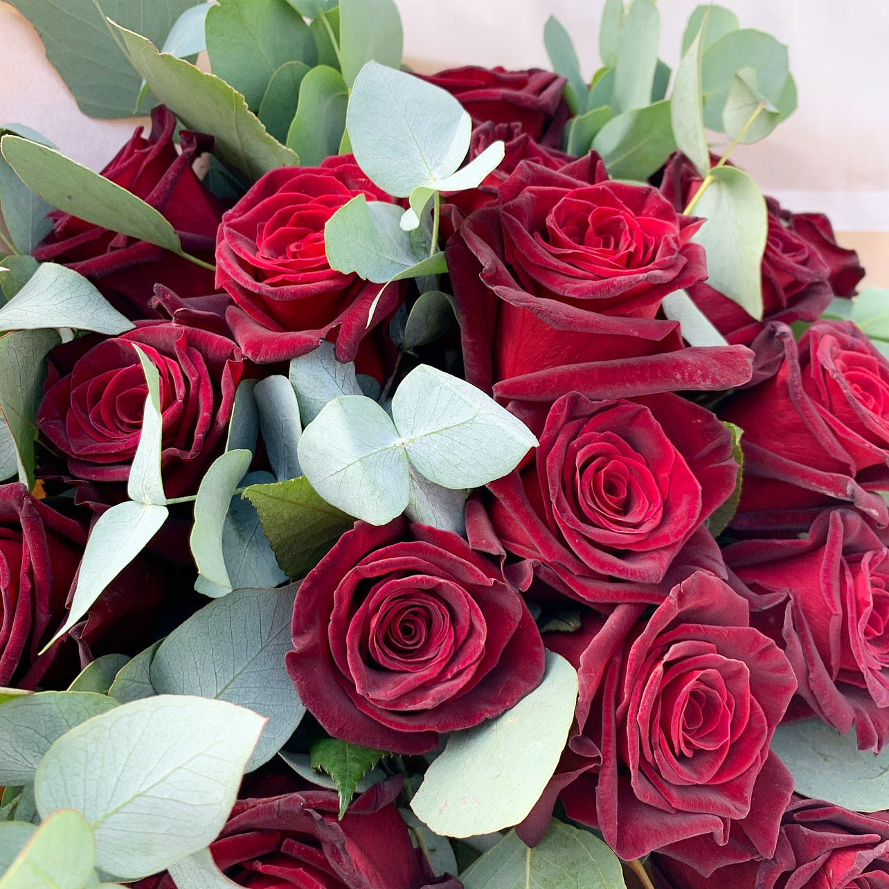 The traditional dozen red roses; symbolising completeness and perfection.